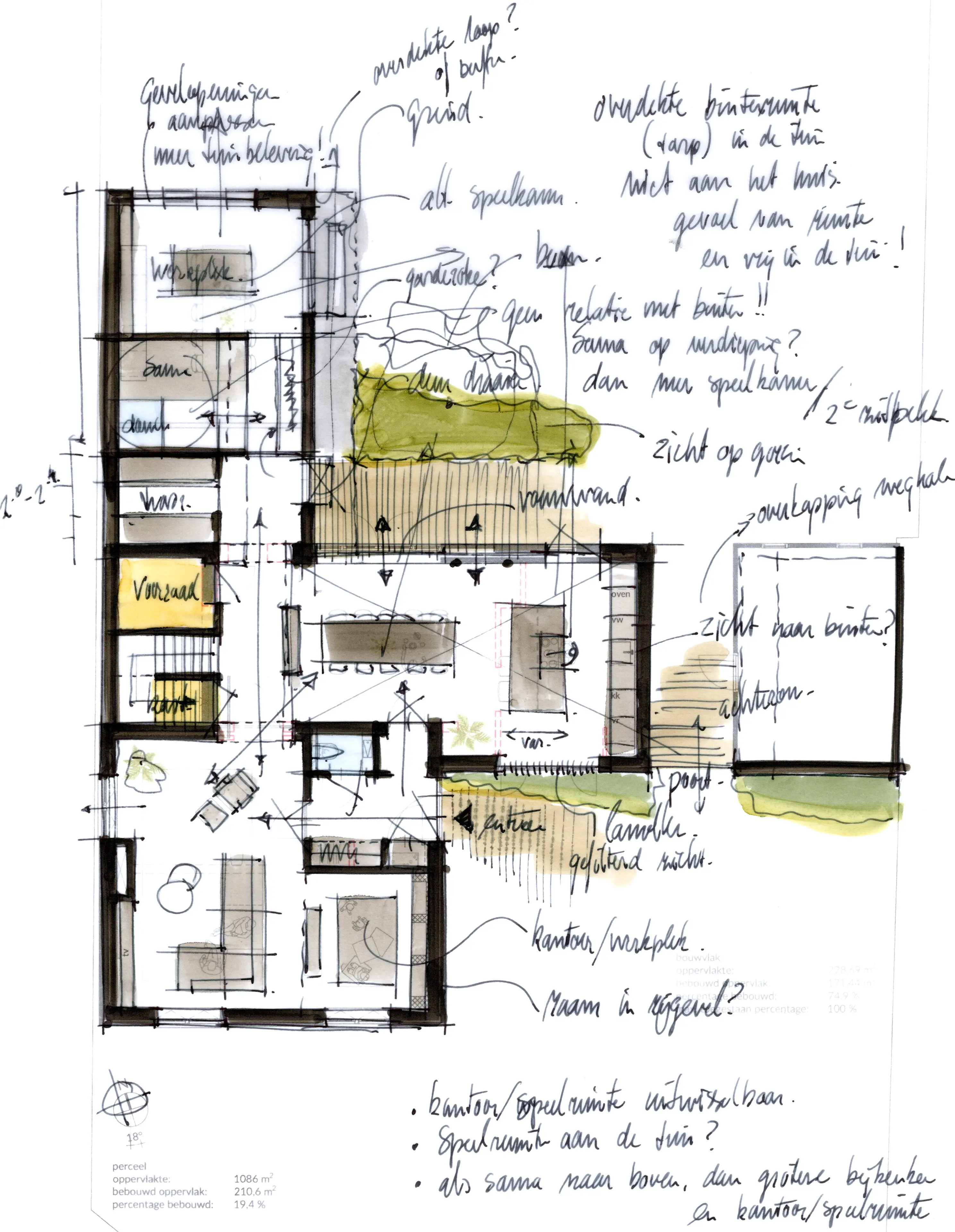 Het nieuwe ontwerp gaat uit van een aantal ingrepen waarmee enerzijds de functionaliteit van de plattegronden verbeterd en uitgebreid wordt en anderzijds de woning weer meer het dorpse karakter van weleer terug zou krijgen.