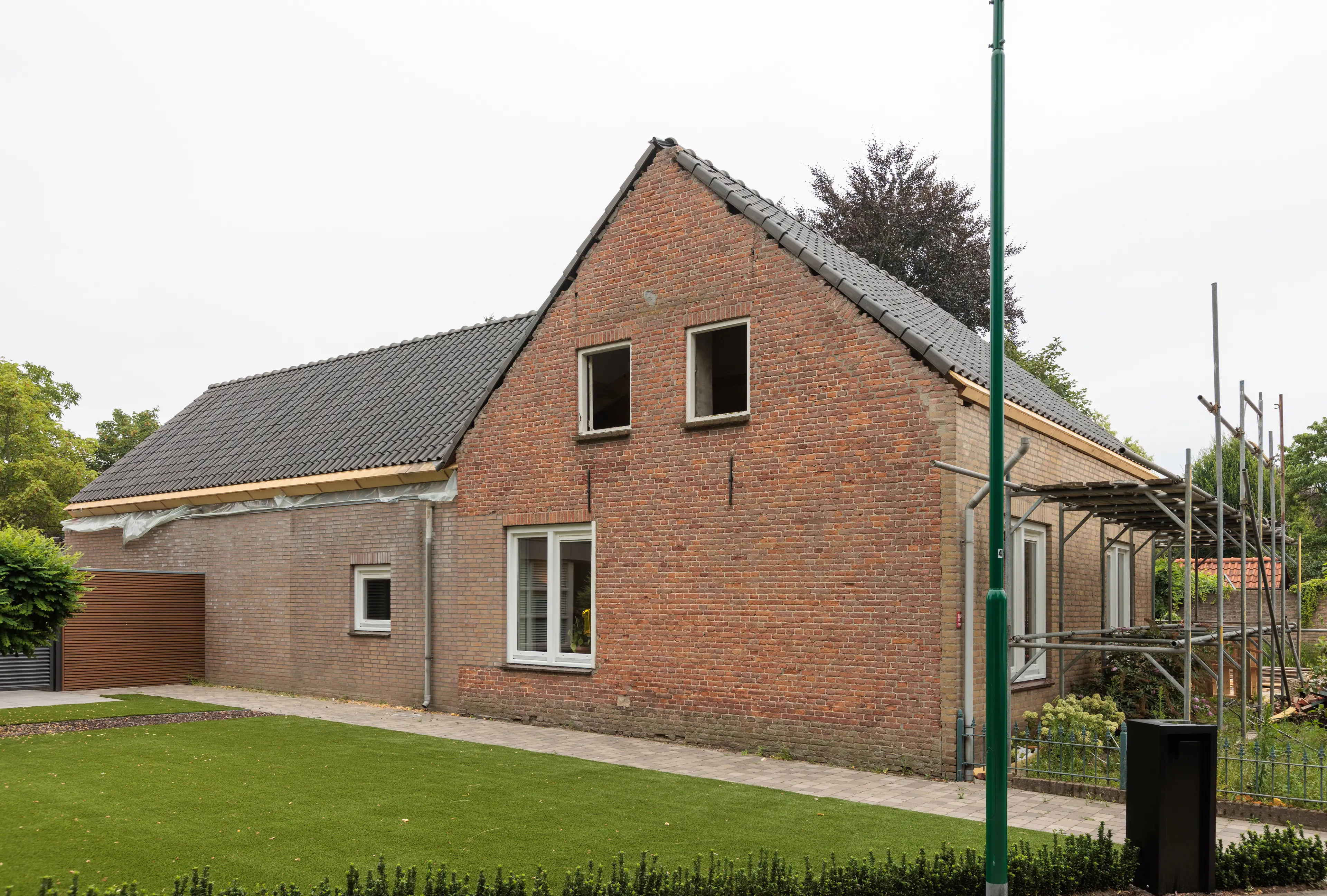 Een jong gezin kocht in 2021 een voormalige boerderijwoning in de dorpskern van Heeswijk-Dinther. Oorspronkelijk gebouwd eind 19e eeuw is de woning in de tijd meermaals verbouwd en uitgebreid. Met name bij de verbouwing in de jaren ’70 gingen daarbij alle originele details verloren. Mede door de toevoeging van dakoverstekken kreeg de oorspronkelijke karakteristieke dorpse woning een geheel andere uitstraling. En door de plaatsing van een nieuw spouwblad voor de originele gevel werden ook alle originele metselwerk details aan het zicht onttrokken.